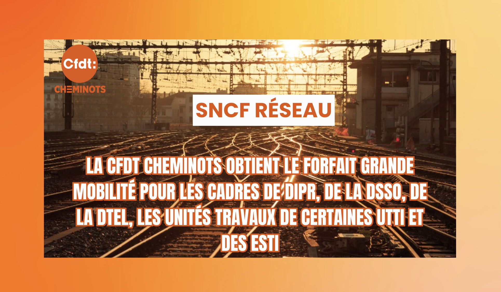 La CFDT cheminots obtient le forfait grande mobilité pour les cadres de DIPR, de la DSSO, de la DTEL, les unités travaux de certaines UTTI et des ESTI.